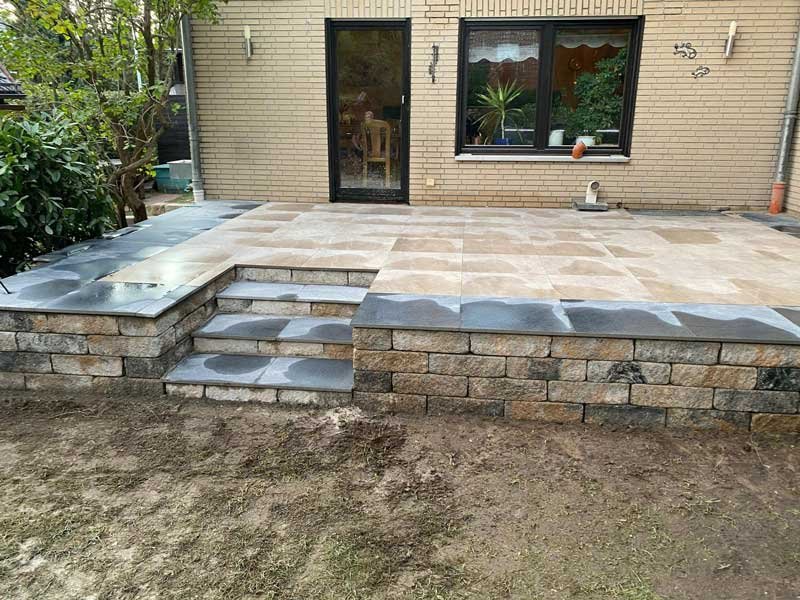 Eine stilvolle Terrasse und harmonische Stufen verbessern das Gesamtbild Ihres Außenbereichs deutlich.